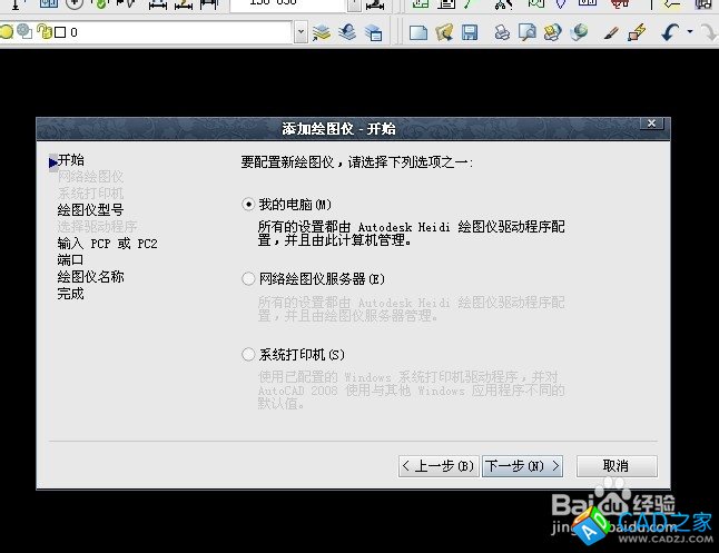 執行菜單欄中的“工具——向導——添加繪圖儀”命令。