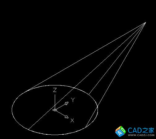 我通過一個例子來說明:現在要畫一個偏心圓錐,底面在WCS的XY平面上,圓心(0,0,0),半徑100,頂點(300,0,400)在ZX平面上.