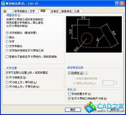 2、如果要創建注釋性的標注,只需要在標注樣式的“調整”頁面的“標注特性比例”里勾選“注釋性”即可。
