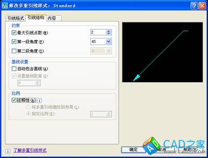3、如果創建注釋性的多重引線,只需要在多重引線樣式的“引線結構”頁面里勾選“注釋性”即可。