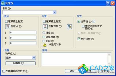 4、如果要創建具有注釋性的塊,只需要在“塊定義”的“方式”里勾選“注釋性”即可。