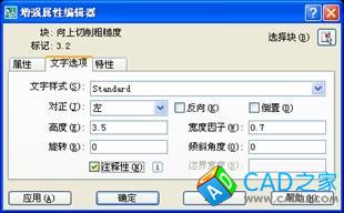 5、如若要將單個非注釋性塊屬性文字改變成注釋性屬性文字,只需在模型空間選中塊,操作菜單“修改”——“對象”——“屬性”——“單個”,在“增強屬性編輯器”窗口的“文字選項”頁面里勾選“注釋性”,再點擊“確定”關閉窗口即可。