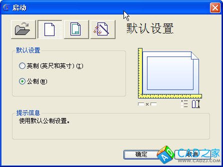 在CAD中啟動或新建圖紙時會彈出一個創建新圖形(或啟動)的對話框,在此對話框中可以直接選擇公制或英制,選擇某個模板文件,或者通過向導來創建新的圖紙,如下圖所示。