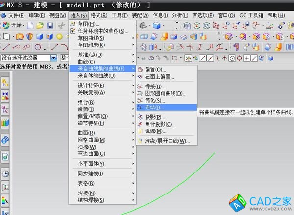 用這個(gè)功能::插入——來自曲線集的曲線——連結(jié) 就可以啦!