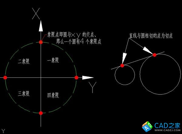CAD中的象限點跟切點分別是什么意思