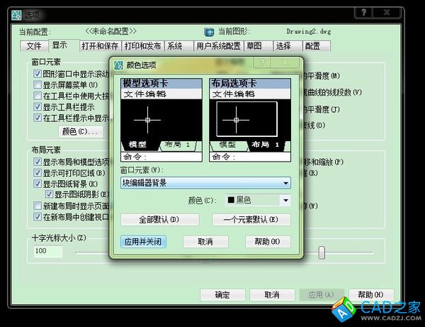 雙擊確定進入塊編輯是很方便的,在位編輯是一樣的,背景變白是因為你設置的塊編輯背景是白色的,我設置的就是黑色的,工具——選項——顯示——顏色——窗口元素——快編輯背景——黑色——確定。