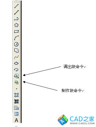 下圖中,上一個是插入(調出)塊命令,下一個是創建(制作)塊命令。
