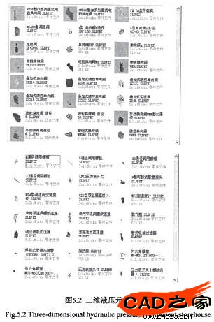 基于己定義的需求建立模型概念后,用戶可以按以下步驟來開發(fā)模型:創(chuàng)建草圖,決定如何標注尺寸,何處應用幾何關系等;選擇適當特征,確定要應用的最佳特征,以何種順序應用那些特征等;如果模型為裝配體,選擇配合什么零部件,應用何種配合等。在本設計中采用自下而上的建摸方式(4)及零件設計表創(chuàng)建了三維液壓元件庫,里面包含一些比較常用的液壓控制閥和輔件,如圖5.2所示,上面為建立的液壓控制閥的三維元件庫,下面為建立的液壓輔件三維元件庫。