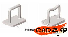 乍一看,結(jié)構(gòu)與機(jī)構(gòu)之間的差異可能并不太明顯,如圖15所示的兩個(gè)設(shè)備。它們都有兩個(gè)通過(guò)鉸鏈連接到不可移動(dòng)基體的擺動(dòng)桿。右邊的設(shè)備使用彈簧將擺動(dòng)桿與基體連接到了一起。沒(méi)有彈簧的設(shè)備屬于機(jī)構(gòu),因?yàn)槠鋽[動(dòng)桿不能自由旋轉(zhuǎn)。不論是圍繞鉸鏈旋轉(zhuǎn)還是圍繞平衡位置來(lái)回?cái)[動(dòng),在擺動(dòng)桿移動(dòng)過(guò)程中,此設(shè)備的任何零件都無(wú)須變形。擺動(dòng)桿顯示的是剛性實(shí)體運(yùn)動(dòng),因此將左邊的設(shè)備歸類為機(jī)構(gòu)。設(shè)計(jì)人員可以使用運(yùn)動(dòng)模擬來(lái)研究其運(yùn)動(dòng)。