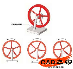 相反,局部支撐的物體,如拖架上鉸接的調(diào)速輪(圖14),可以旋轉(zhuǎn)而無(wú)須變形。調(diào)速輪可像剛性實(shí)體那樣移動(dòng),因而該設(shè)備屬于機(jī)構(gòu),而非結(jié)構(gòu)。我們將使用運(yùn)動(dòng)模擬來(lái)研究調(diào)速輪的運(yùn)動(dòng)。如果將調(diào)速輪視為剛性實(shí)體,則無(wú)法計(jì)算應(yīng)變和應(yīng)力(詳細(xì)信息請(qǐng)參閱附錄1)。