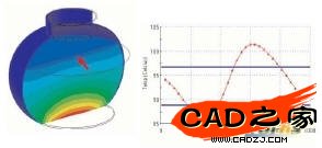 當(dāng)往一個(gè)杯子中倒入熱咖啡時(shí)就會(huì)產(chǎn)生熱應(yīng)力,這樣的熱應(yīng)力分析需要確定溫度的分布;杯子的內(nèi)表面溫度就是咖啡的溫度,而外表面則通過自定義的對(duì)流系數(shù)向外界空氣中散熱,由于冷卻是個(gè)相對(duì)較慢的過程,因此可以通過一個(gè)穩(wěn)態(tài)熱分析可以獲得杯子的溫度分布。溫度的差異性會(huì)導(dǎo)致熱應(yīng)力,當(dāng)我們使用COSMOSWorks的熱分析的結(jié)果就可以建立一個(gè)靜態(tài)算例獲得杯子的熱應(yīng)力分布。(圖20)