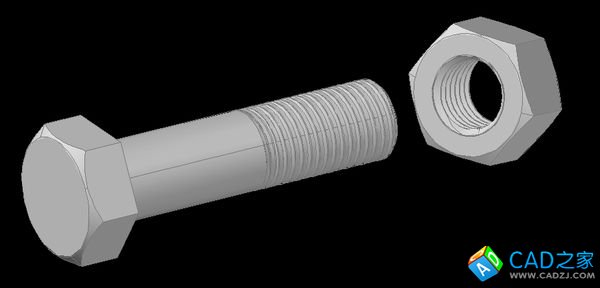 在螺旋線的一端,根據螺紋的牙形,畫出一個正三角形,(邊長小于螺距).然后,用"掃掠"工具,對象為正三角形,路徑為螺旋線,就可以畫出螺紋的形狀.(在CAD中,可能需多次試畫),畫出螺紋形狀后,使用"差集"去除材料.就可以畫出內螺紋(比如螺母)或外螺紋(比如螺栓)