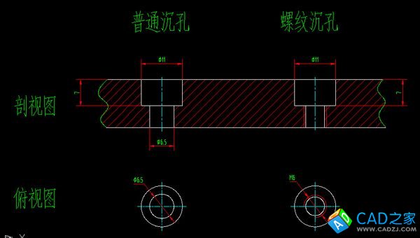 CAD帶螺紋的沉孔俯視圖怎么畫(huà)的說(shuō)明