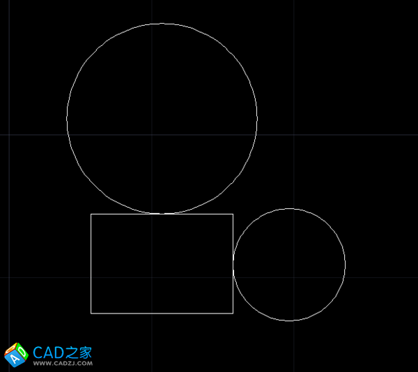 在CAD2014中如何使用推斷約束使得兩個圓一樣大,而且兩圓均與矩形相切且兩圓彼此相切