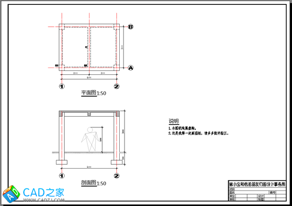 小王拿著這張新的A3圖紙再去找主任,主任一看,「吆,這么快就做好了,不錯不錯。恩,有了平面剖面了,再加一個柱子和基礎的詳圖吧,一般用1比20的,就放到同一張圖紙上。怎么樣?」