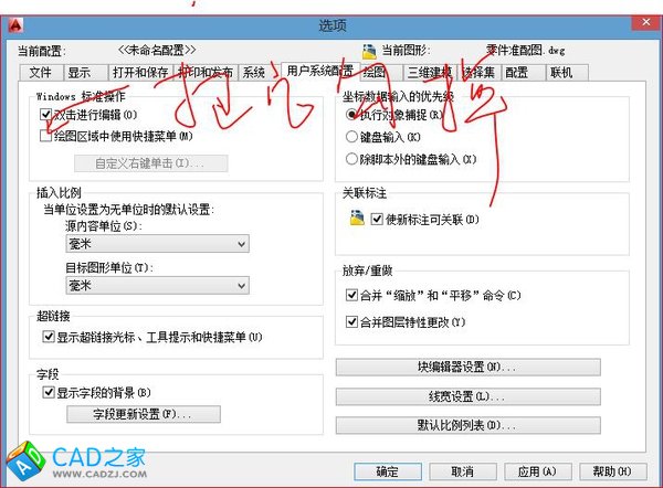 3.在工具-選項-系統(tǒng)配置,取消右鍵快捷命令,實現(xiàn)右鍵單擊確認和重復,剛開始可能不習慣,慢慢的你就會發(fā)現(xiàn)快捷方式其實一點也不快捷