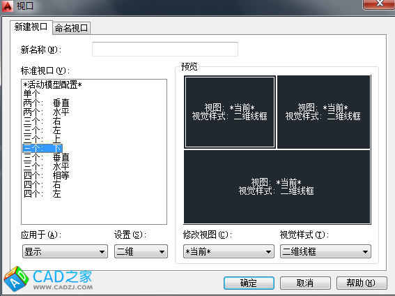 新名稱:為新模型空間視口配置指定名稱。如果不輸入名稱,將應(yīng)用視口配置但不保存。如果視口配置未保存,將不能在布局中使用。