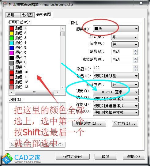打印-模型里面點擊打印樣式,就出現下面界面,就可設置打印顏色和粗細。