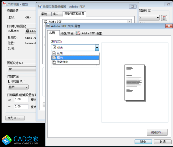 設置打印的縱橫向的選擇,不僅要在剛進入打印對話框中,選擇點取橫向或縱向的復選框;還要到打印機的特性設置中選定縱橫向的設置才能正確得到想要的打印效果。