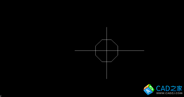 3、看命令行提示,指定多邊形的中心,本例中選十字線的交點