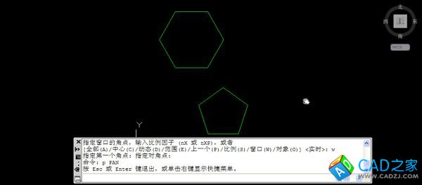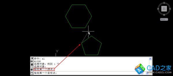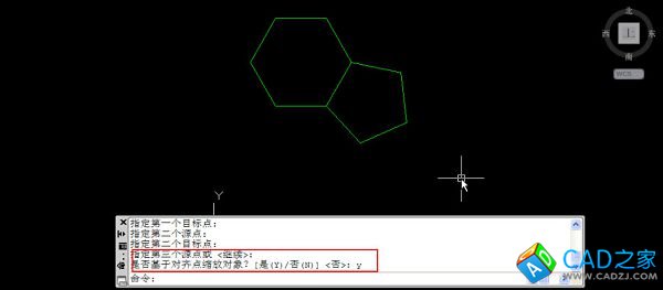 5、回車,命令行會提示是否縮放圖形,輸入Y,回車,五邊形將移動、旋轉、縮放到與六邊形對齊,如下圖所示。