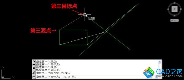4、根據命令行提示繼續指定第二個源點和目標點,如下圖所示。