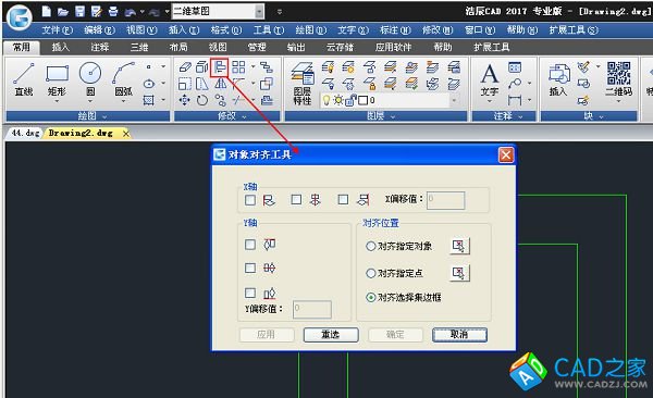 對齊的命令是ALIGN,簡寫是AL,你愿意輸入AL或是到菜單工具欄去調用就看個人喜好了。