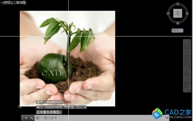 IMAGEFRAME命令有三個選項(xiàng),默認(rèn)選項(xiàng)是1,這種狀態(tài)下不僅顯示有邊框,而且打印的時候也有邊框,如圖所示。