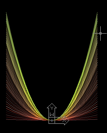 ACAD沒有現成的畫拋物線命令,我們只能用程序編寫多段線畫近似拋物線。理論上,拋物線的X值可以是無限小、無限大,這里取值范圍在正負24之間。