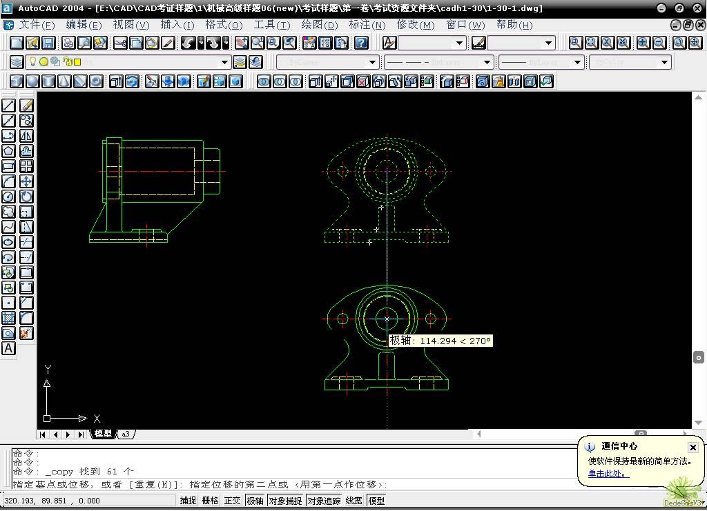 還想提示一下,若是考廣東高級繪圖員遇到這種題時,記得把這三個視圖復制后粘貼到a3或a4(視圖紙的大小而定)布局中,并把標題欄填好。