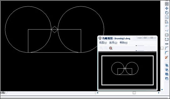 鳥瞰視圖窗口如圖所示,顯示整個圖形,并用一個粗線矩形標記當前視圖,該粗線矩形即為視圖框,可以移動視圖的位置或者改變視圖框的大小來動態更改圖形中的視圖。