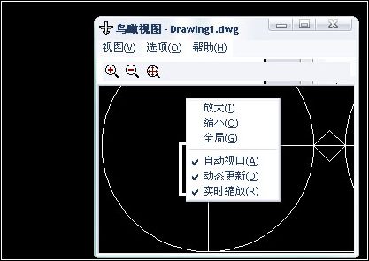 3、實時縮放:使用“鳥瞰視圖”窗口進行縮放時,更新到繪圖區中。
