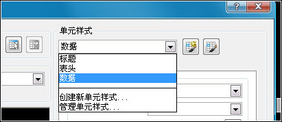 可以從下拉列表中選擇單元樣式的類型,包括 數(shù)據(jù)、表頭和標(biāo)題 。可以在下拉列表中“創(chuàng)建新單元樣式”和“管理單元樣式”,也可以單擊右側(cè)的“創(chuàng)建新單元樣式”和“管理單元樣式”按鈕。