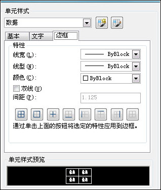 1)邊界按鈕 :一共8個按鈕,通過單擊邊界按鈕,可以將選定的特性應(yīng)用到邊框,控制單元邊界的外觀。