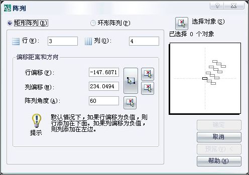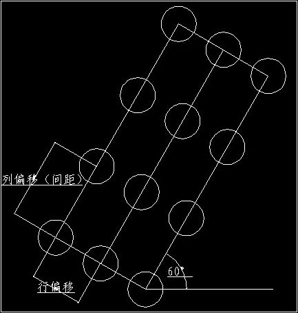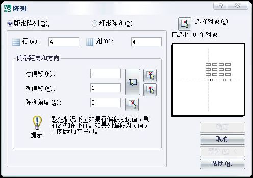 3、在“行偏移”和“列偏移”文本框中分別輸入行間距和列間距。輸入正值,則向X、Y軸的正方向陣列;輸入負值,則向X、Y軸的負方向陣列。
