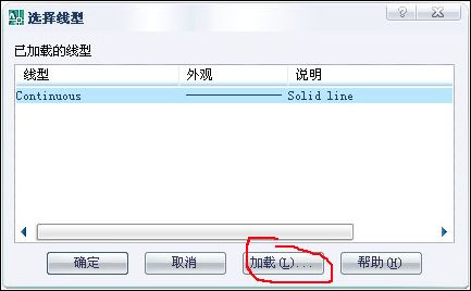該對(duì)話框中顯示了線型文件中包含的所有線型,在列表框中選擇需要的一種或多種線型(shift和alt鍵),然后單擊“確定”,被選定的線型將被加載到“選擇線型”對(duì)話框中。