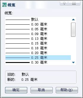 AutoCAD默認(rèn)的線寬為0.25毫米。