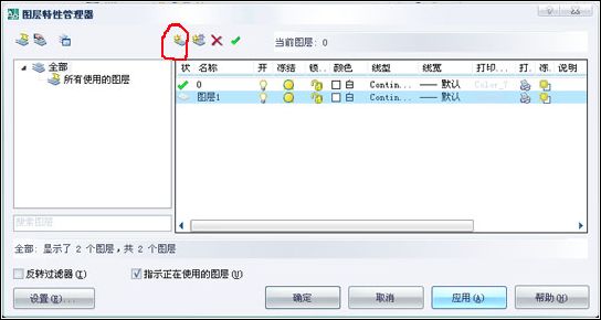 使用相同的方法,可以新建更多的圖層。新圖層的默認(rèn)特性與當(dāng)前圖層“0”層的默認(rèn)特性相同,可以根據(jù)繪圖的需要設(shè)定新圖層的顏色、線型和線寬等。