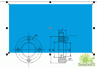 6. 不放棄選擇,單擊屬性欄上的“取消群組”(注意不是取消所有群組),將大片空白和有用圖形分離開來。按ESC取消所有選擇,在輸入的Wmf圖形的大空白上單擊選中它,刪除之,可去掉空白,如圖6。(為了能夠更清楚一些表示,圖中的空白已經填充成藍色),只保留我們所需要的有用圖形部分。
