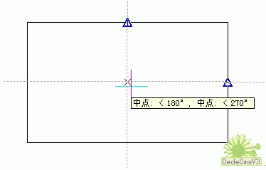 3、 啟動繪制圓命令后,移動光標分別捕捉矩形兩相鄰邊的中點做為追蹤點(激活為追蹤點時會以一個小十字號表示)并拉出追蹤線,移動追蹤線到兩追蹤虛線交點處,會有提示框提示如下: