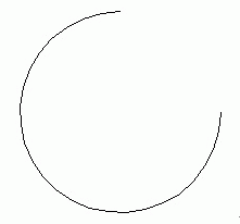 例子:己存在一個從90度到270度的圓弧,要拾取圓弧上45度處的點做為畫線的開始點: