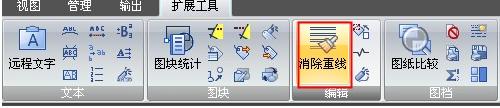 習(xí)慣使用浩辰CAD經(jīng)典界面的設(shè)計(jì)師可在下拉菜單中選擇“擴(kuò)展工具>編輯工具>消除重合線(xiàn)”調(diào)用消除重線(xiàn)功能,喜歡使用功能區(qū)的設(shè)計(jì)師可在“擴(kuò)展工具”功能區(qū)中單擊“消除重線(xiàn)”按鈕,如下圖所示。
