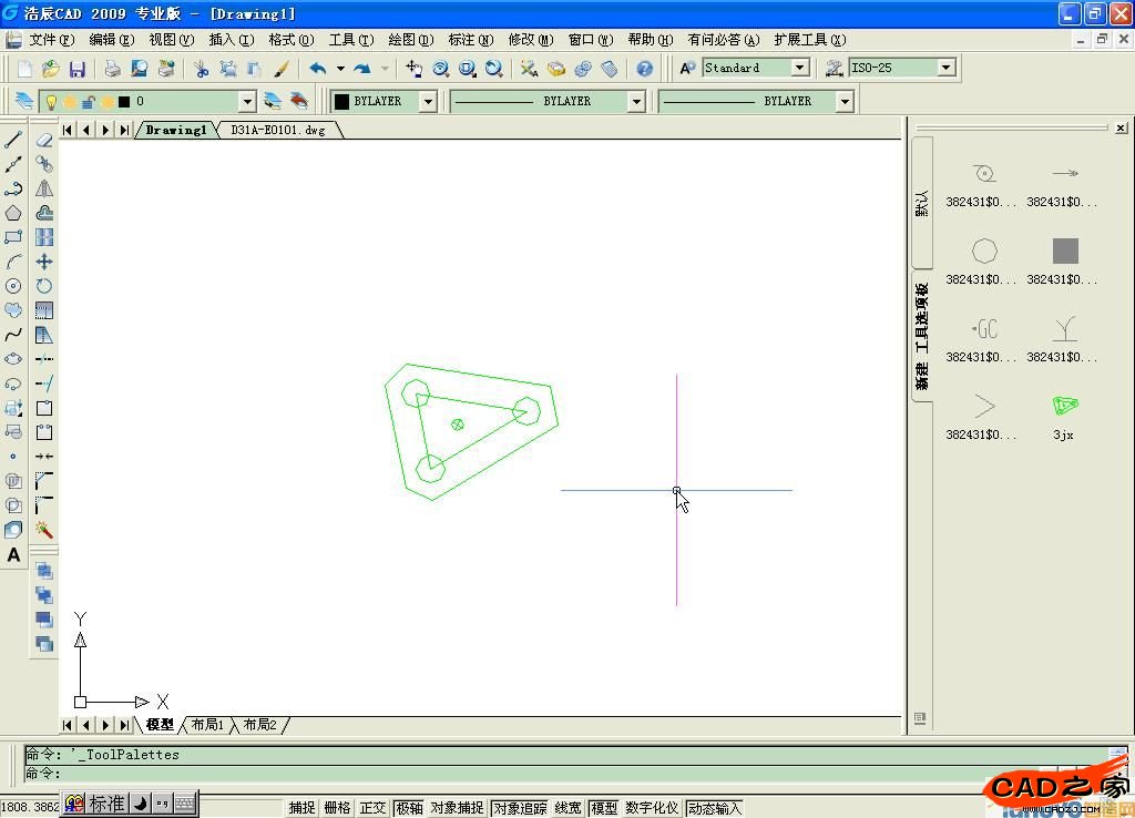 選擇工具選項板中的圖塊則可以方便的進行調(diào)用,只需在工具選項板上左鍵點擊需要插入的圖塊,然后在繪圖區(qū)確定插入位置即可。