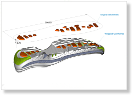 原來平坦的3D鞋底幾何模型可以方便地定位于自由3D曲面上。