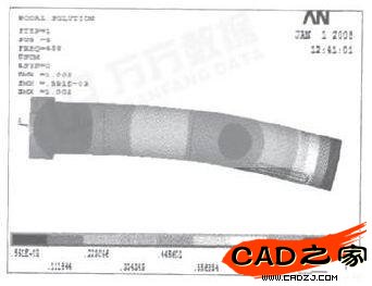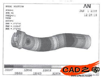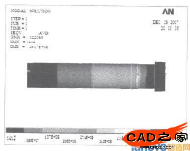 動(dòng)態(tài)分析是指對(duì)被分析部件在自由狀態(tài)下或在一定的約束下的模態(tài)分析,以確定部件的多個(gè)低階固有頻率及相關(guān)振型。主軸的振動(dòng)可表達(dá)為各階振型的線性疊加,其中低階振型比高階振型影響大,越是低階影響越大,低階振型對(duì)主軸的動(dòng)態(tài)特性起決定作用,故進(jìn)行主軸的振動(dòng)特性分析時(shí)通常取前五階即可。在ANSYS模態(tài)分析中進(jìn)行計(jì)算,采用精度較高的子空間模態(tài)提取法,提取了前五階模態(tài)數(shù)據(jù)(固有頻率和振型)