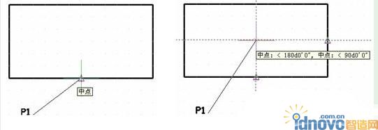 鍵入Line命令或者單擊圖標(biāo) ,點(diǎn)取起點(diǎn)P1后,取得對(duì)象捕捉模式有兩種情況: