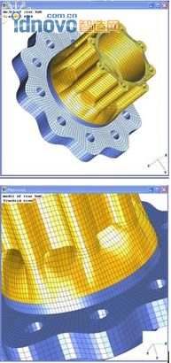 圖 4 利用TrueGrid快捷地對復雜結構的后輪轂進行六面體網格劃分