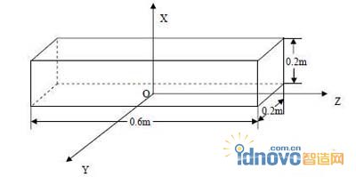 實際的鋼坯端面為0.2m×0.2m 正方形,長度為10m。在實際計算,當長度方向為端面邊長的3 倍以上時,端面對心部的熱應力影響很小。所以在本計算中,建立了尺寸0.2m×0.2m×0.6m 的模型進行計算。計算溫度場及應力場的幾何模型見圖1。