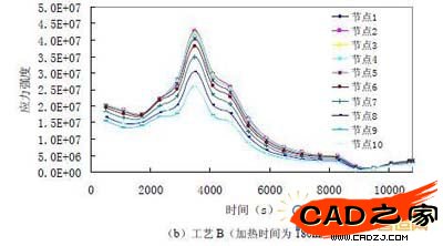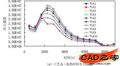 圖 11.位于z=0 的xy 面上節點應力強度隨時間變化的歷程曲線