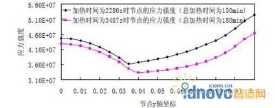 針對兩種不同的工藝,利用ANSYS 有限元平臺,進行了溫度-結構耦合計算。分別計算了不同加熱段坯子的溫度分布和應力強度分布[5]。